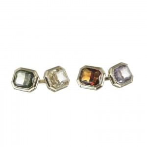 3245. Paire de boutons de manchettes sertis de quartz taille rectangle