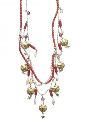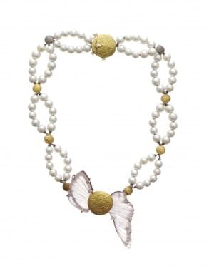 3287. Collier de perles retenant un motif de papillon aux ailes en qua...