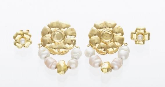 3252. Paire de boucles d'oreilles à motif de fleur retenant des perles...