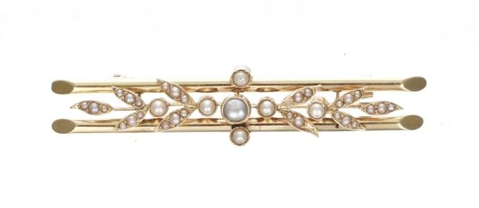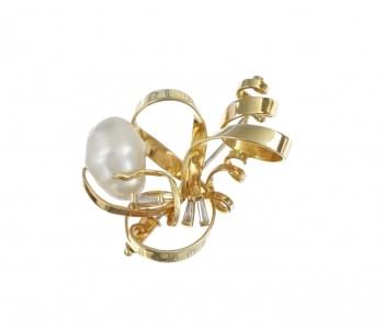 3257. Broche sertie d’une perle rehaussée de diamants taille baguette