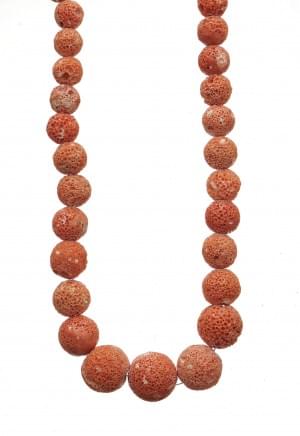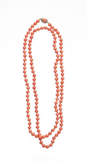 3284. Collier de perles de corail terminé par un fermoir serti de cora...