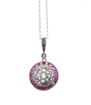 3268. Pendentif rond Art déco serti de diamants taille rose entourés d...
