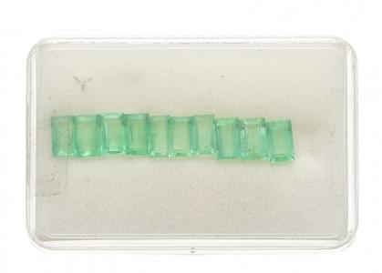 ot de dix émeraudes taille rectangle sur papier (total 8,4 ct)