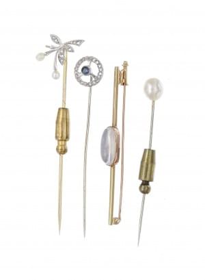 Or 750. On joint deux épingles en or et or gris 750, poids brut...
