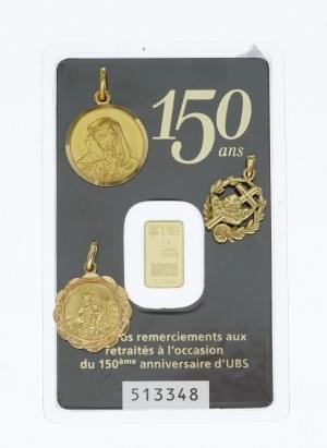 Or 750, 7 g. On joint un lingotin en or 999.9%, 1 g.