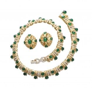 3236. C. Dior, parure composée d'un collier et de clips d'oreilles éma...