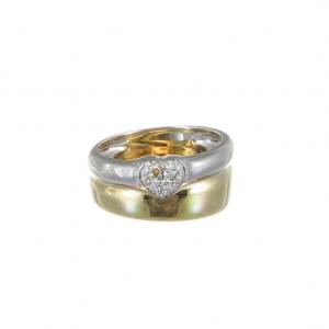 3292. Bague double anneau deux ors, l'un à motif de coeur serti de dia...