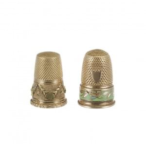 3299. Ensemble de deux dés à coudre, l'un à décor de fleurs émaillées...