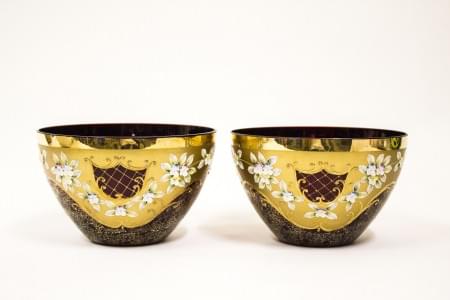 Paire de coupes en verre grenat à décor doré et émaillé de fleur...