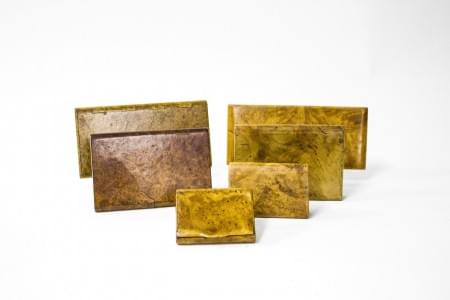 3411. Six boîtes à cigarettes en bois de loupe, l'une signée Dunhill