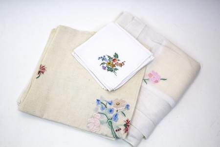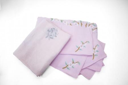 Coton, à décor brodé de fleurs sur fond rose, de dimensions dive...