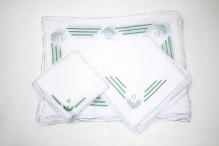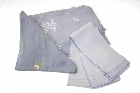 Coton, à décor brodé de fleurs sur fond gris-vert, de dimensions...