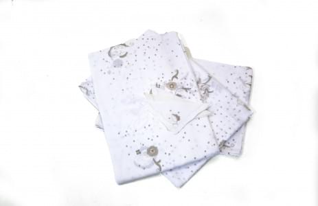 Coton à décor brodé de fleurs dorées sur fond blanc, de dimensio...