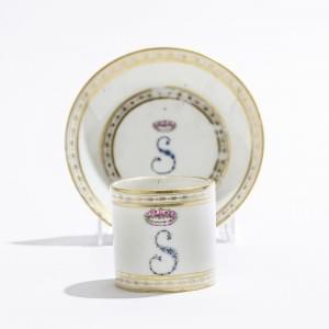 Porcelaine à filets dorés et à décor d'un S sous couronne de fle...