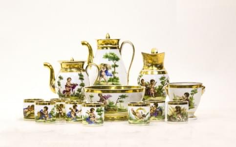 Porcelaine de Paris, XIXe comprenant: théière, cafetière, crémie...