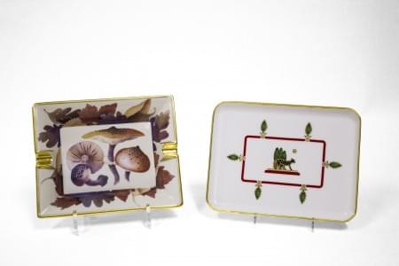 Porcelaine à décor de champignons pour l'un et d'un léopard pour...