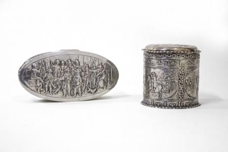 eux boîtes à décor repoussé de la Ronde de Nuit de Rambrandt et...