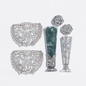3483. Boucle de ceinture niellée "Caucase" et cuillère à motif de grap...