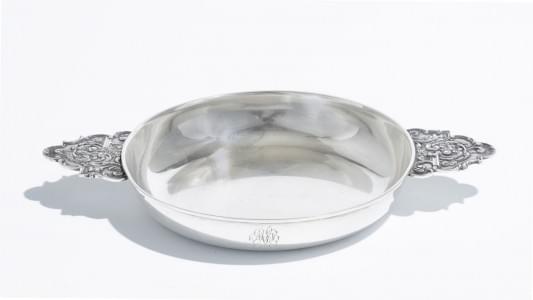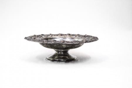 3462. Coupe ronde à bordure ondulée ornée de perlettes et ajourée de t...