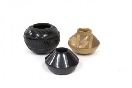 1058. Trois vases, Amérique du Nord dont Apaches, San Ildefonso et San...