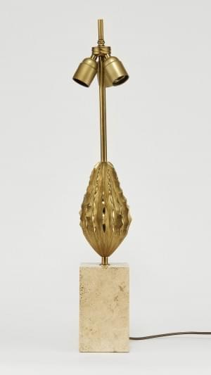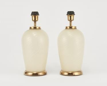 Deux pieds de lampe et un vase, céramique à décor en léger relie...