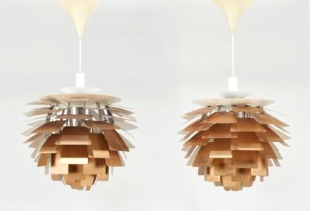 Paire de suspensions Artichaut, acier cuivré et laqué blanc, édi...