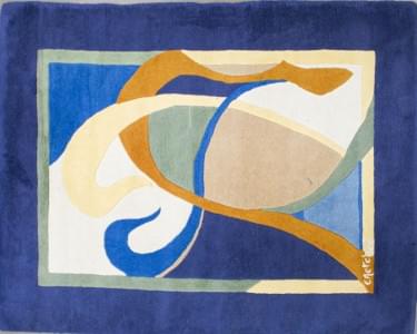 Laine et coton à décor de volutes polychromes et bordures bleu f...