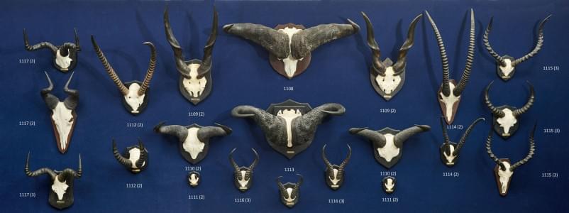 Trois massacres montés sur écusson. Provenance Botswana, Ngamila...