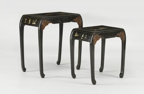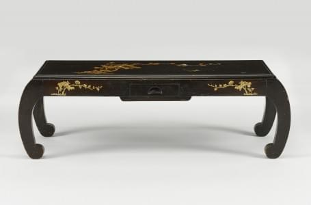 Bois noirci et or à décor de bambous et branches de cerisier, un...
