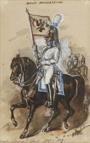 Garde d'homme à cheval et garde urbaine à cheval, deux gouaches...