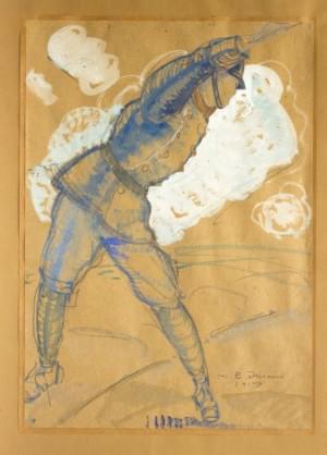 Grenadier, mine de plomb, aquarelle et gouache sur papier, signé...