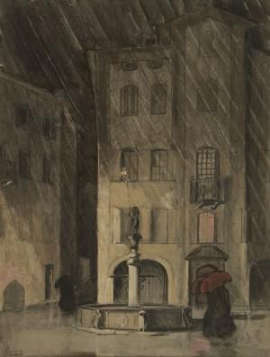 Place à Sion, pastel sur papier, signé et daté 1925, 62x47 cm