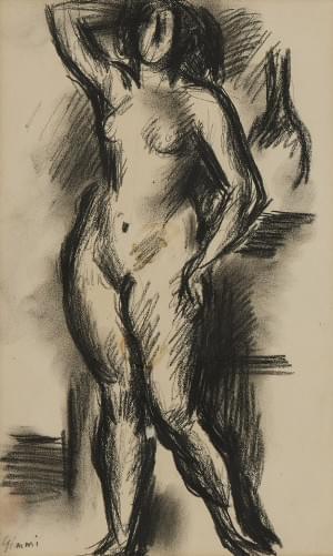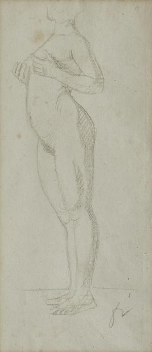 Nu debout, crayon noir sur papier, monogrammé, 29x13 cm. Provena...