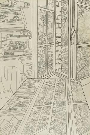Fenêtre, encre sur papier, signée, 105x71 cm