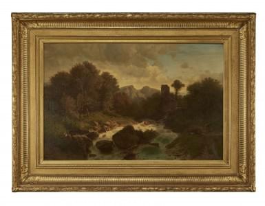 Torrent près des Allinges, Haute-Savoie, huile sur toile, 62x105...