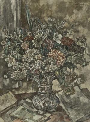 Bouquet de fleurs dans un vase en porcelaine, 91x70 cm