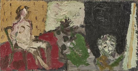 Le modèle et le peintre, huile sur toile, attribuée au dos, 14x2...