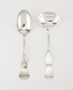 466. Grande cuillère de service et louche à décor stylisé