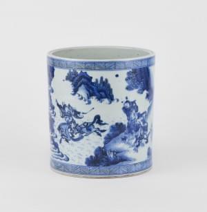 Porcelaine émaillée bleu blanc à décor de cavaliers et autres pe...