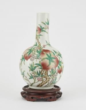 832. Grand vase de forme tianqiuping à décor des neuf pêches, Chine,...