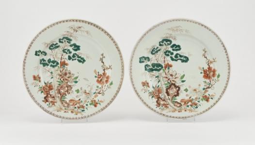 839. Paire de plats famille rose, Chine, Compagnie des Indes, XVIIIe...