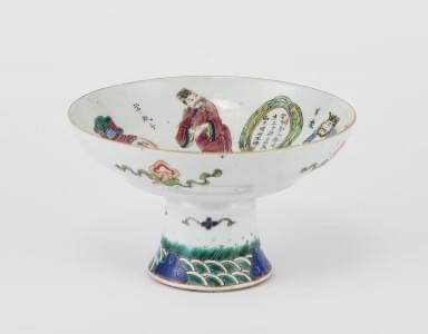Porcelaine émaillée polychrome à décor de personnages et poèmes,...