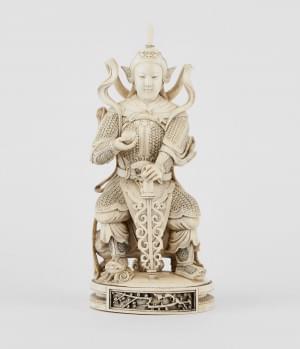 Ivoire et palissandre sculpté, signé, H 12 cm