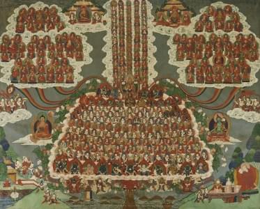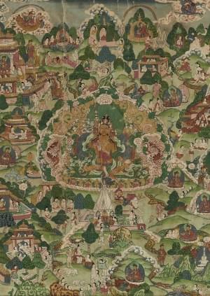 Représenté au centre entouré des dieux de la secte Gelugpa sous...