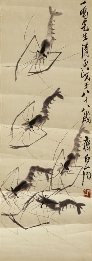Crevettes, estampe sur papier, montée en rouleau, 105x34 cm