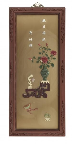868. Suite de quatre panneaux de pierre dure sur bois, Chine, XXe s