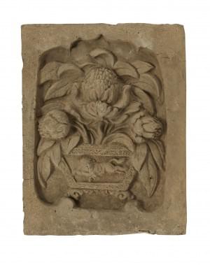 Terre cuite à décor de vase fleuri, 34x26 cm