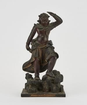 Bronze à décor d'un paysage et d'animaux marins, H 9,5 cm