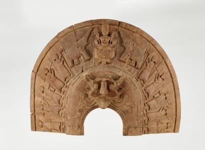 Bois sculpté à décor de personnages, éléphants, divinités et dra...