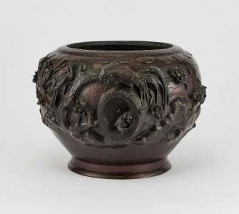 880. Cache-pot à décor de volatiles parmi des fleurs et rochers, Japo...